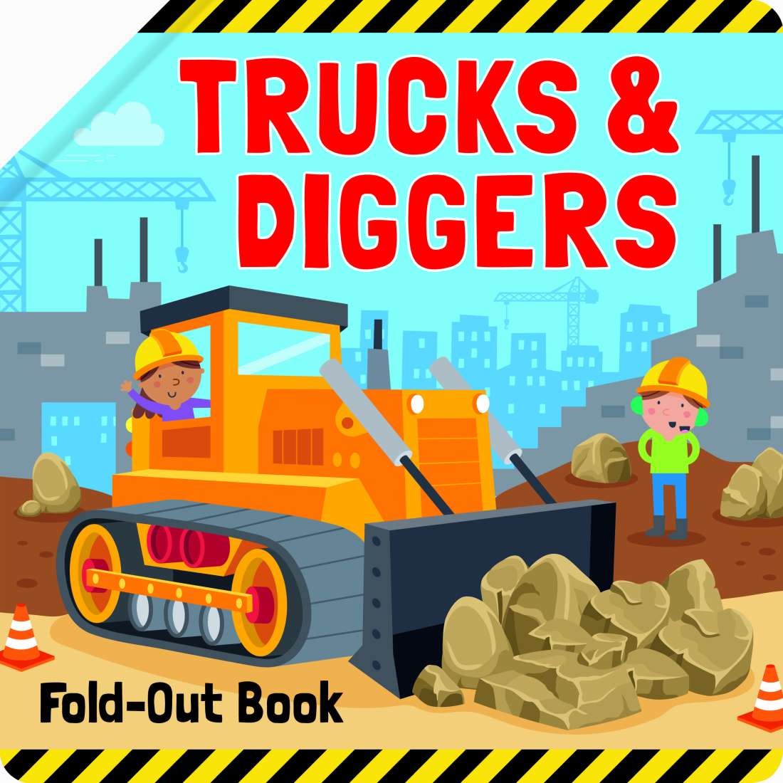 Seven mighty full-colour spreads make up this innovative book, which opens up from a corner spine with hinged fold-out pages to reveal giant scenes containing a variety of trucks, diggers and construction workers.